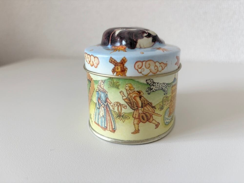 中世ヨーロッパの夢をみるソックス猫の缶