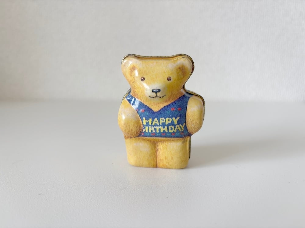 このくまの注目ポイントはなんと言ってもニットの描写!特に裏面のバースデーケーキの模様、本当に編んでいるように描かれていて、見ていて飽きません。
