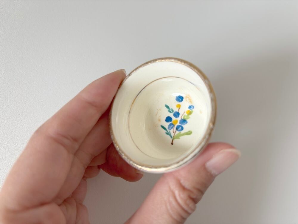 内側のハンドペイントのはな、少しはげてしまってはいますが、金縁などでかわいさが増し増しです◎