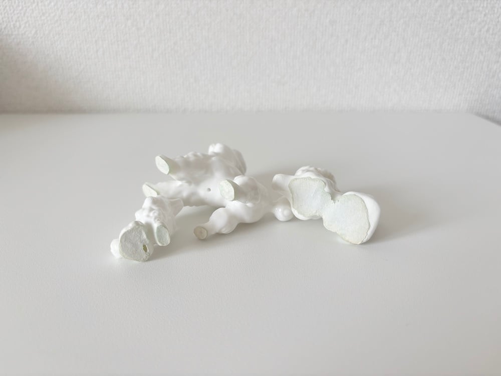 毛のもこもこ感がかわいらしく表現してある、犬の陶器の置物です。