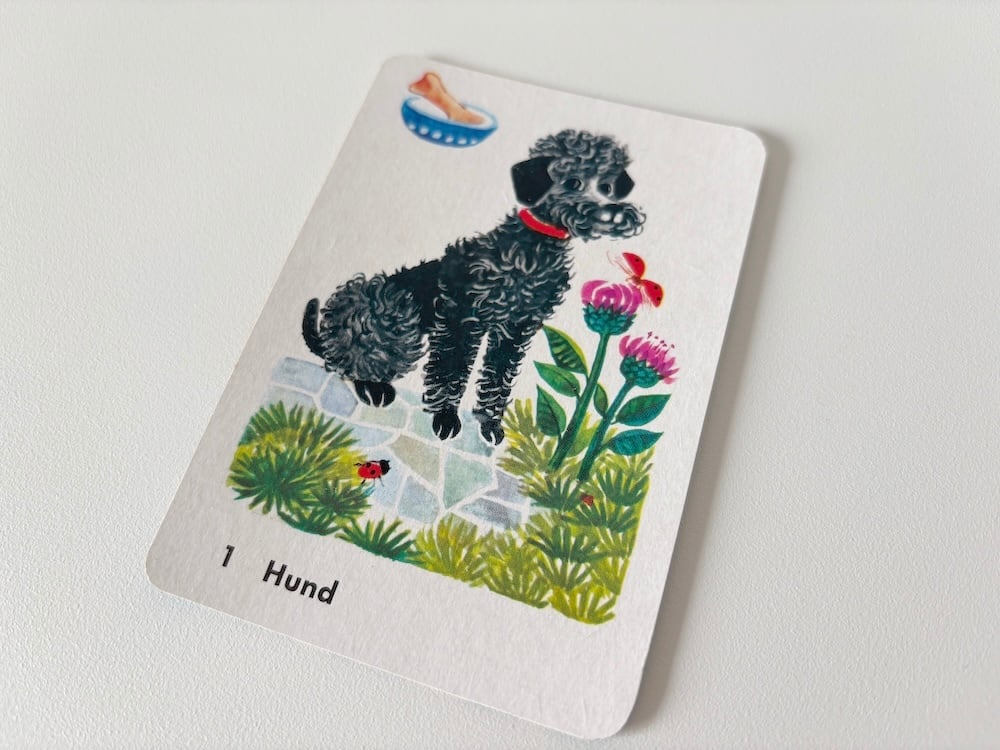 【旧東ドイツ】てんとう虫を見つけて興味津々な犬のカード