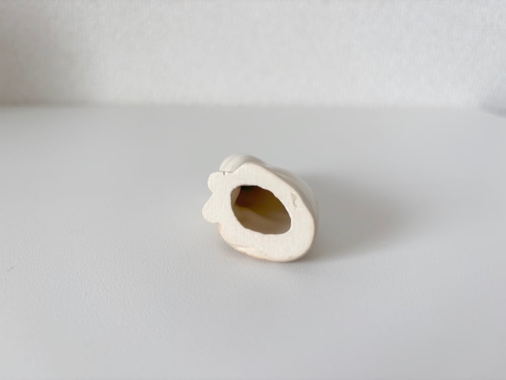 緑の瞳が吸い込まれそうな、猫の小さな陶器の置物です。