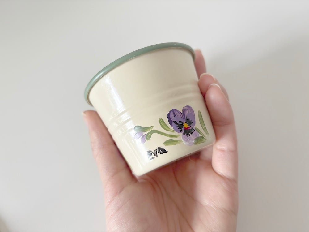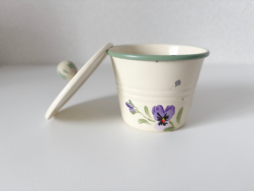 【スウェーデン】可憐なパンジーのホーローのミニバケツ / Eva