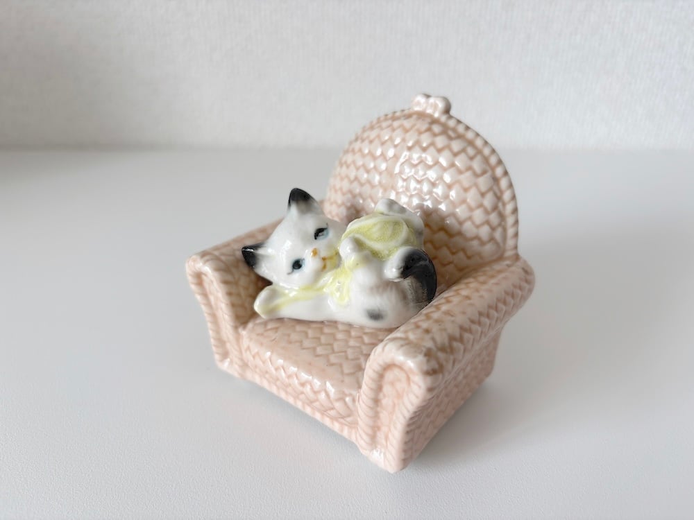 【フランス】キュートな椅子でくつろぐキュートな猫の陶器の置物