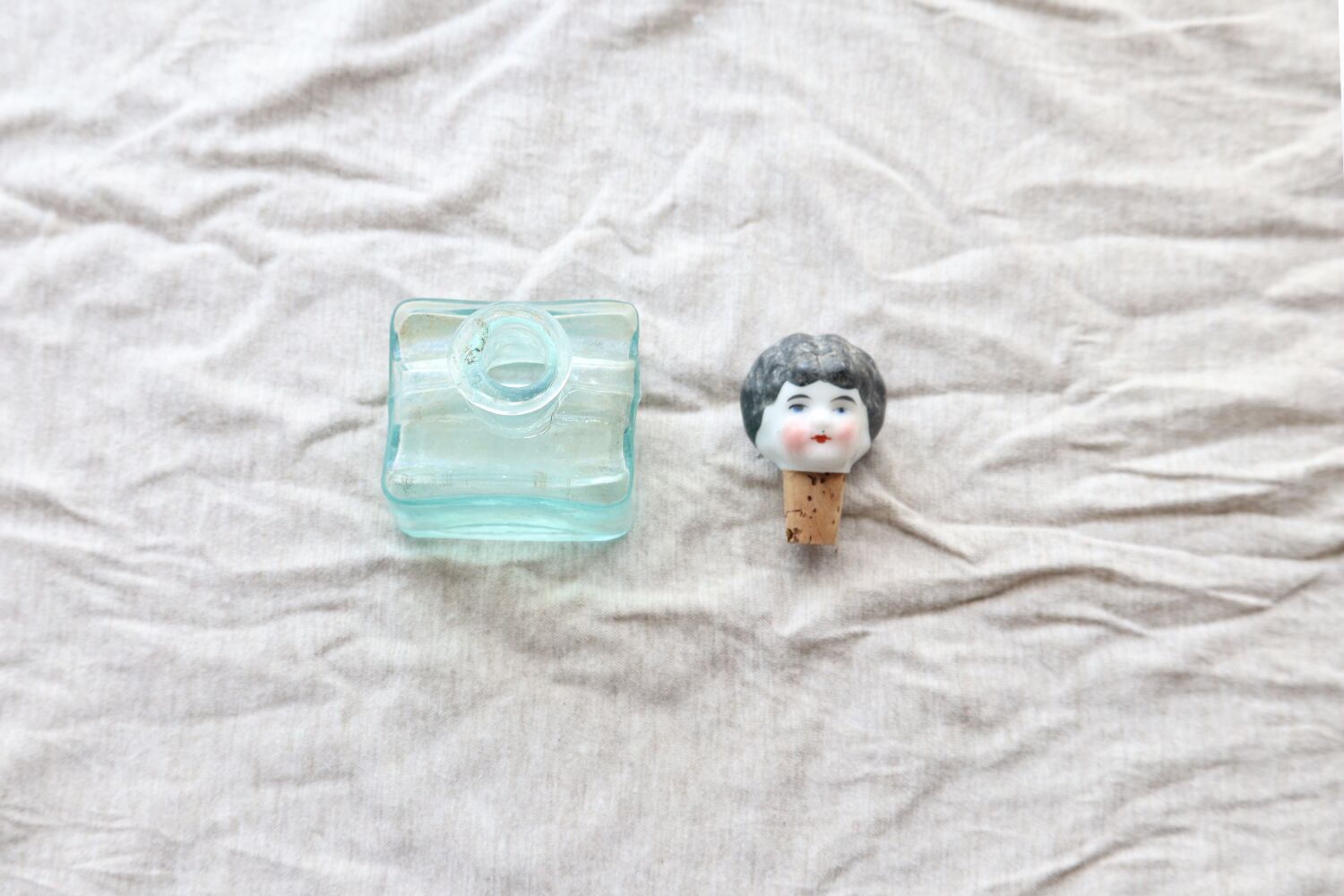 お人形のコルクとガラス瓶 (※ヒビ有り)