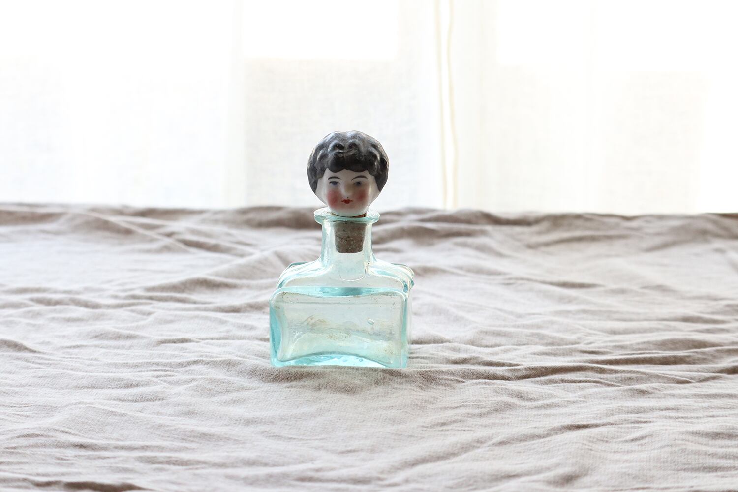 陶器製の人形の頭のついたコルクと、瓶とのセットです。