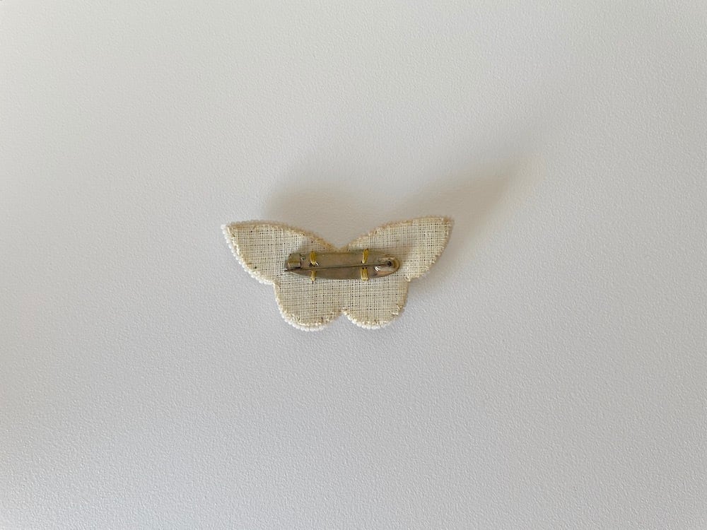 パステルカラーのビーズがかわいい、ちょうちょのブローチです。