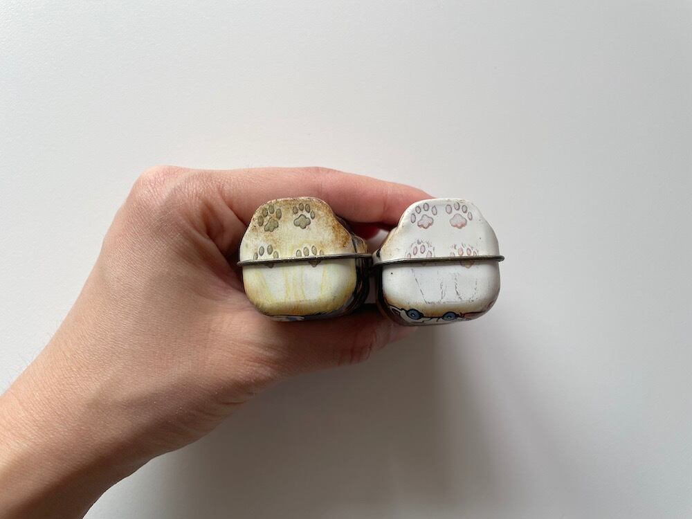 【イギリス】猫の形の小さな缶 / 三毛猫さんと、ネズミのプルトイ