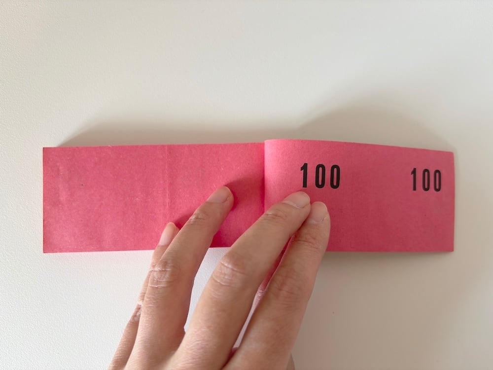 1〜100の通し番号のチケットで、中央に切り取り線が入っています。